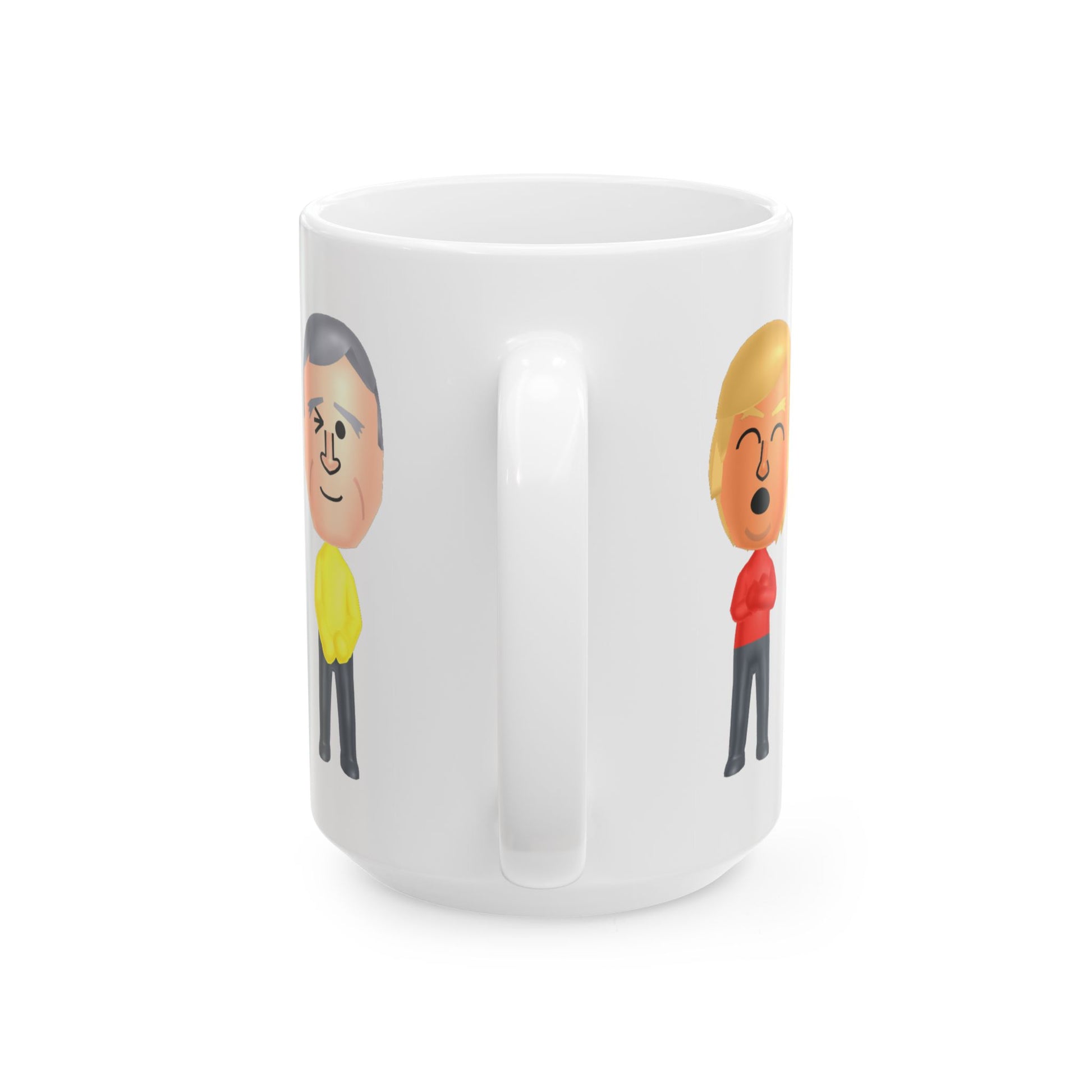 Warm-up with a nice cuppa out of this customized ceramic coffee mug, featuring the President Play cast's Miis! Personalize it with cool designs, photos or logos to make that "aaahhh!" moment even better. It’s BPA and Lead-free, microwave & dishwasher-safe, and made of white, durable ceramic in 11-ounce size. Thanks to the advanced printing tech, your designs come to life with incredibly vivid colors – the perfect gift for coffee, tea, and chocolate lovers.
